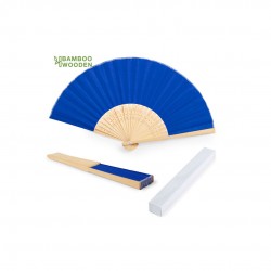 Abanico de varillas de bambú y tela en poliéster.