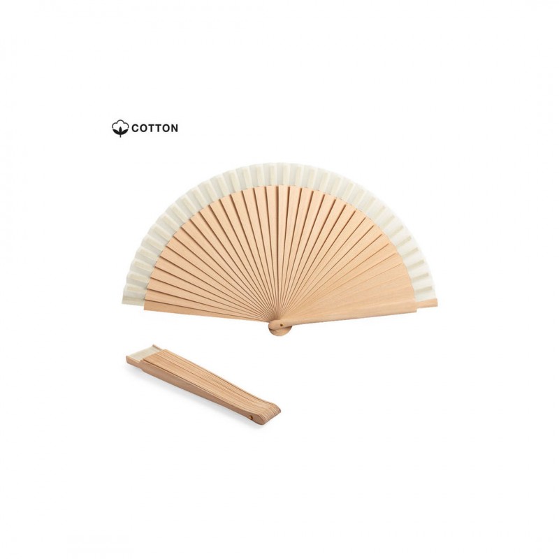 Abanico de línea nature, con varillas de madera y tela en algodón.