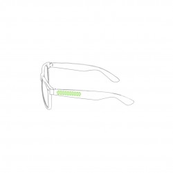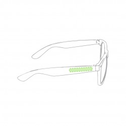 Con montura en fibra de bambú y patillas en bambú. Lentes tintadas a juego.