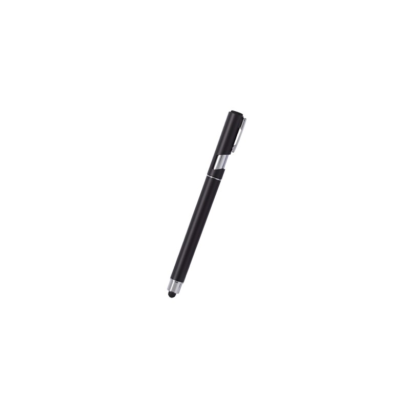 Bolígrafo 4 en 1. Puntero para móvil, limpiador de pantalla, bolígrafo, y capuchón son soporte para móvil.