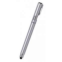 Bolígrafo 4 en 1. Puntero para móvil, limpiador de pantalla, bolígrafo, y capuchón son soporte para móvil.