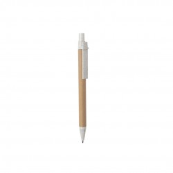 Cuerpo en cartón reciclado, con accesorios en caña de trigo, para así fomentar la utilización de materias primas naturales y reducir las emisiones contaminantes.