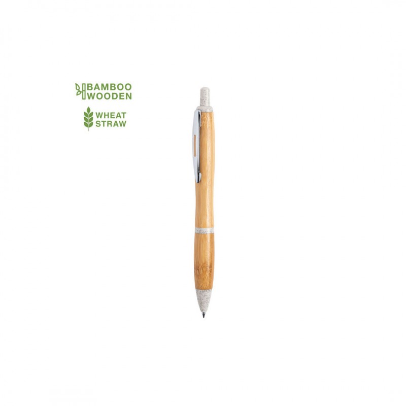 Cuerpo en bambú, con pulsador y punta en caña de trigo, para así fomentar la utilización de materias primas naturales y reducir las emisiones contaminantes.
