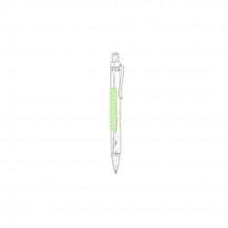 Cuerpo en bambú, con pulsador y punta en caña de trigo, para así fomentar la utilización de materias primas naturales y reducir las emisiones contaminantes.