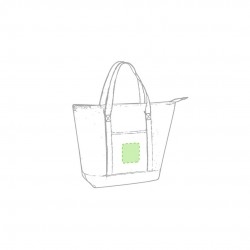 Innovadora bolsa térmica en papel laminado, resistente a las salpicaduras de agua y con interior en aluminio. Tamaño 43x33+14 cm, con cierre de cremallera y amplio bolsillo en frontal. Asas medianas reforzadas de 45 cm, libre de BPA.