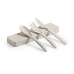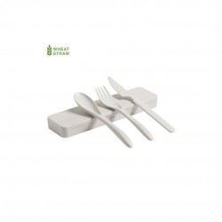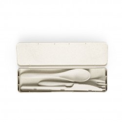 Fabricados en fibra de bambú, incluye tenedor, cuchara y cuchillo. Libre de BPA y presentados en estuche de fibra de bambú.