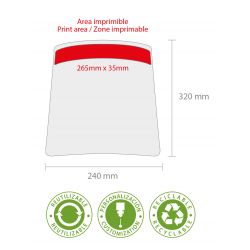 1. Personalización a todo color , área impresión 265mm x 35mm.
