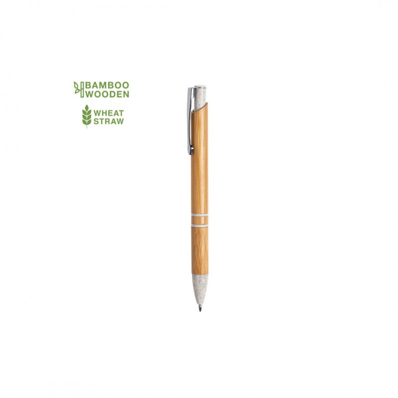 Cuerpo en bambú, con punta en caña de trigo, para así fomentar la utilización de materias primas naturales y reducir las emisiones contaminantes y original clip metálico.