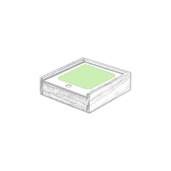 Set de juegos con baraja francesa y dados de madera, presentado en estuche individual de madera con tapa deslizante.