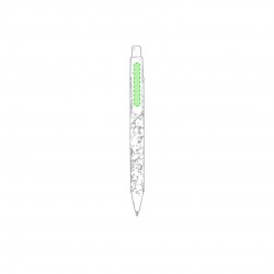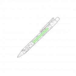 Bolígrafo de mecanismo pulsador, con cuerpo en corcho natural y accesorios en caña de trigo, para así fomentar la utilización de materias primas naturales y reducir las emisiones contaminantes.