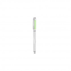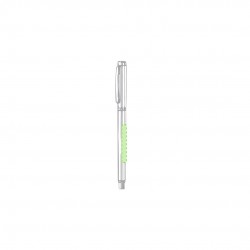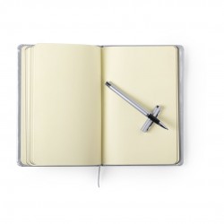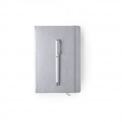 Set de bloc de notas con tapas de suave tacto acabadas en polipiel de tono plateado y roller de aluminio a juego.