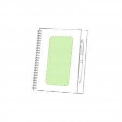 Incluye libreta de anillas con tapas rígidas en cartón reciclado, con soporte para bolígrafo, 80 hojas de disposición a una raya y diseño eco.